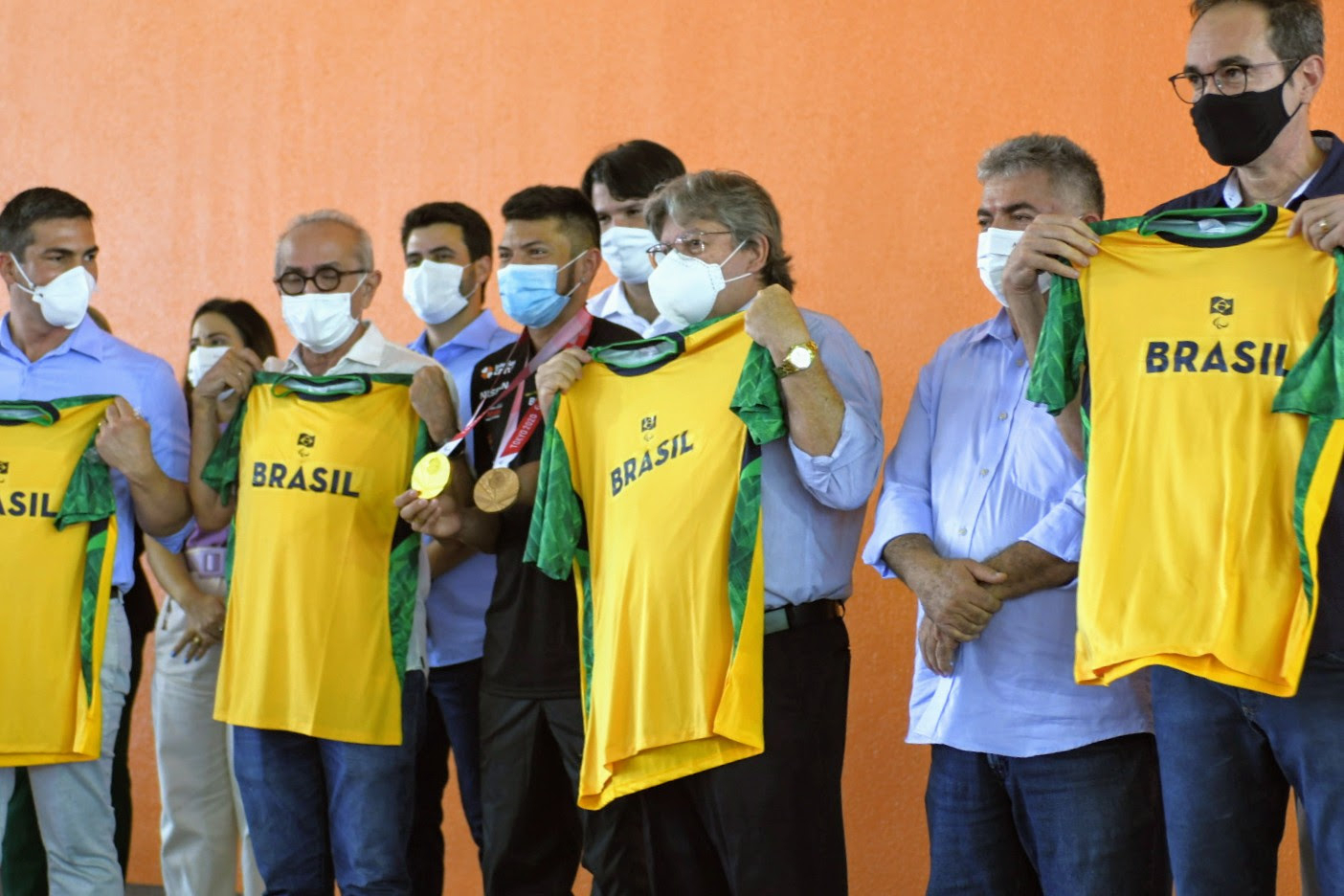 O governador João Azevêdo recepcionou, nesta sexta-feira (10), na Vila Olímpica Parahyba, em João Pessoa, os atletas paralímpicos paraibanos e os que treinam na Paraíba, que competiram nas Paralímpiadas de Tóquio, realizadas entre os dias 24 de agosto e 5 de setembro. Na oportunidade, o chefe do Executivo estadual, o prefeito de João Pessoa, Cícero Lucena, e demais autoridades presentes entregaram troféus em reconhecimento à participação dos paratletas e dos membros das comissões técnicas que representaram o estado em diversos modalidades dos jogos paralímpicos, como atletismo, goalball, futebol de 5, parataekowdo, lançamento de dardo e halterofilismo.