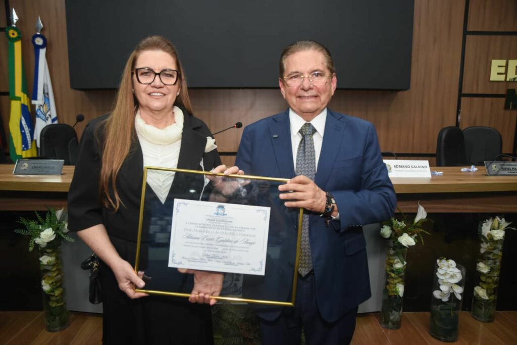 A presidente da Câmara, Valtide Paulino, ressaltou que as homenagens a Adriano Galdino são decorrentes do trabalho que ele vem exercendo no seu mandato. “Nós, vereadores da Câmara Municipal de Patos, apresentamos este voto como demonstração de apreço e gratidão. O presidente Adriano tem demonstrado ser um líder que aglutina e, obviamente, isso tem lhe rendido as homenagens”, pontuou.
