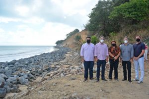 “Chegamos ao momento histórico de entregar a obra que garante a proteção da nossa falésia, um dos principais cartões postais da cidade. Com a colocação de pedras, protegemos a base da barreira, e com outra ação objetiva que foi a implantação da drenagem no alto, pegando os bairros de Seixas e parte do Altiplano, fazemos com que as águas das chuvas que vinham com muita velocidade para o pé da barreira tenham agora um outro direcionamento”, explicou o prefeito Luciano Cartaxo.