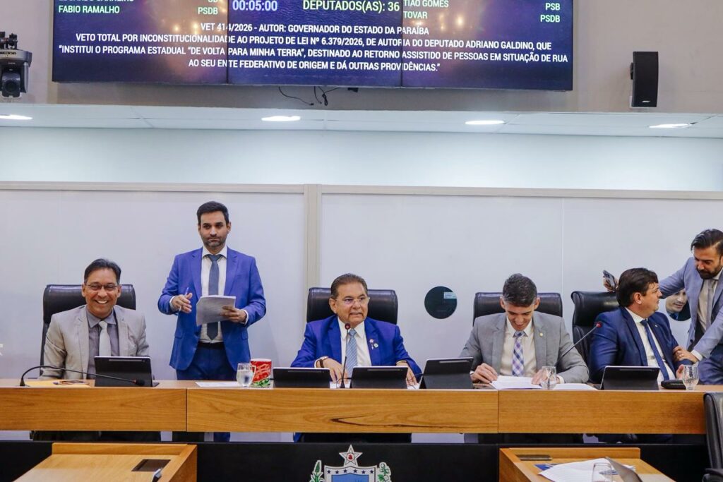 A Assembleia Legislativa da Paraíba (ALPB) derrubou por maioria o veto do Governo do Estado ao Projeto de Lei 6.379/2026, que institui o Programa Estadual “De Volta Para Minha Terra”. A matéria de autoria do presidente da Casa Epitácio Pessoa, deputado Adriano Galdino, tem como objetivo acolher e conceder retorno assistido a pessoas em situação de rua que, voluntariamente, desejarem retornar ao seu estado de origem.