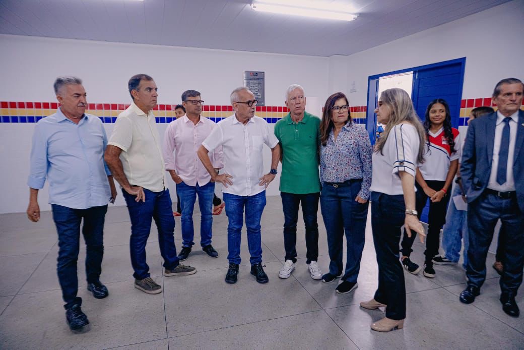 Uma área extensa, preenchida por bancos, anfiteatro, ginásio poliesportivo e auditório. A parte interna, além de ambientes climatizados, biblioteca, sala Google e espaço Make completam a nova estrutura da Escola Municipal Trigueiro do Vale, no bairro do Altiplano, entregue nesta quinta-feira (6) pelo prefeito Cícero Lucena e o vice-prefeito Leo Bezerra, que recepcionaram os alunos para o início do ano letivo cheio de novidades. O prefeito lembrou que essa já é a 42ª unidade escolar reconstruída pela Prefeitura e reforçou que esse padrão mais moderno, seguro, confortável e tecnológico vai chegar em toda a Rede Municipal de Ensino.