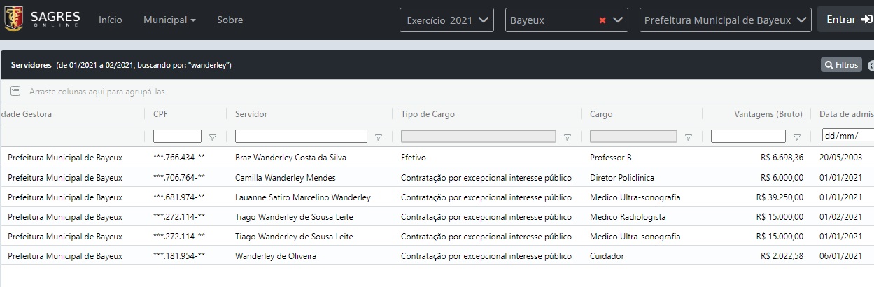 A estimativa é que, a contar pelo atual salário que recebe, o casal de médicos Tiago Wanderley de Sousa Leite e sua esposa Lauanne Sátiro Marcelino Wanderley, contratados pela prefeitura de Bayeux, através do Fundo Municipal de Saúde, da Secretaria Municipal de Saúde, deve receber quase meio milhão de reais, em 2021.