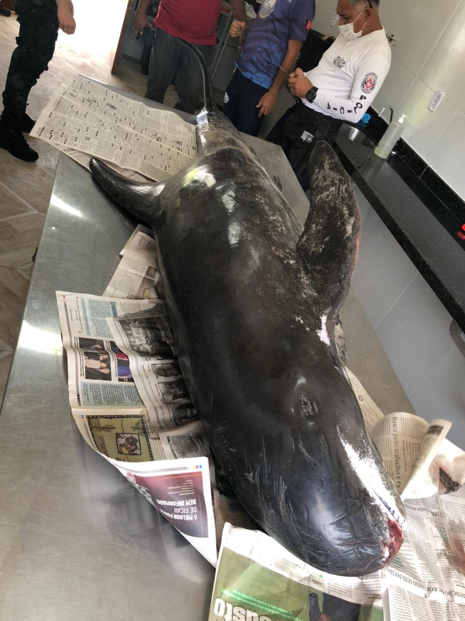 O golfinho da espécie cabeça-de-melão, que foi encontrado morto, na manhã desta quarta-feira (16), na Praia de Formosa, em Cabedelo, será usado em ações de educação ambiental, para conscientizar crianças e adultos sobre a importância da preservação da fauna marinha. O animal apresentava visíveis sinais de que foi machucado por rede de pesca, antes de morrer.