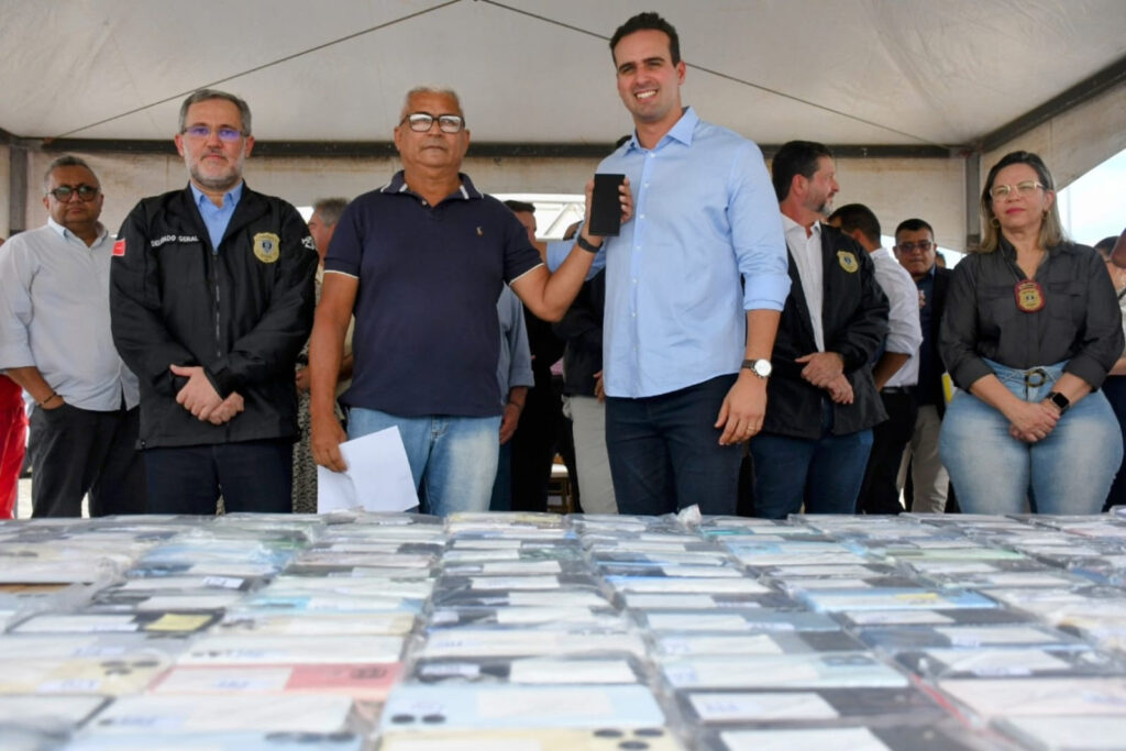 O governador Lucas Ribeiro participou, na manhã desta quarta-feira (15), na Cidade da Polícia Civil, em João Pessoa, da 8ª edição da Operação Recupera, ação da Polícia Civil da Paraíba voltada à investigação de roubos e furtos de celulares e à restituição dos aparelhos às vítimas. Nesta edição, cerca de 500 telefones foram devolvidos aos proprietários.