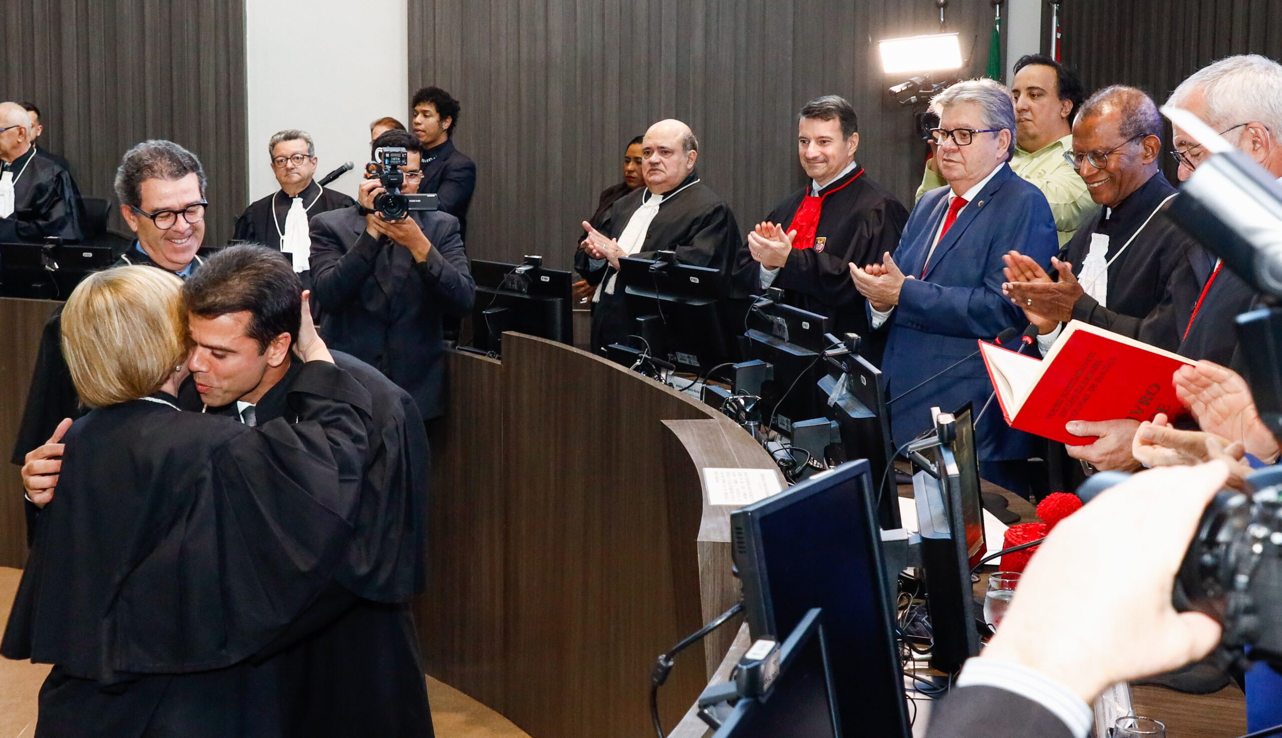 O governador João Azevêdo prestigiou, nesta terça-feira (22), a posse de Francisco Seráphico da Nóbrega Filho no cargo de desembargador do Tribunal de Justiça da Paraíba (TJPB) na vaga do Quinto Constitucional do Ministério Público do Estado. A solenidade ocorreu na Sala de Sessões do Pleno, na sede do Poder Judiciário, em João Pessoa.