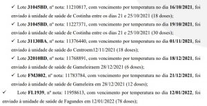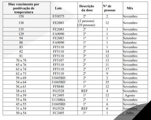 De acordo com o documento obtido de forma exclusiva pelo portal, diversos lotes foram encaminhados a unidades de saúde do município com prazo de validade vencido por tempo de positivação de temperatura. Após análise de números da Rede Nacional de Dados em Saúde (RNDS), a equipe constatou que doses da Pfizer com até 158 dias de vencimento – mais de cinco meses – foram aplicadas na população. Ao todo, 881 pessoas teriam recebido vacinas vencidas.