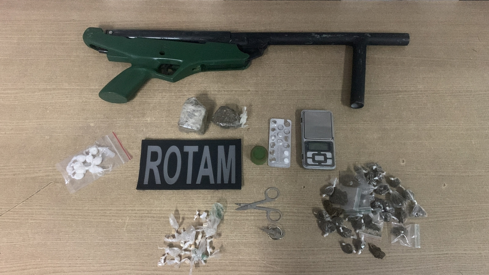 Nas diligências, o Rotam localizou e apreendeu uma espingarda calibre 12 de fabricação caseira, e quase 80 porções de drogas, entre maconha, crack e cocaína. A suspeita é que a arma serviria para fazer a ‘segurança’ do ponto do tráfico na região, atividade que foi impedida pela ação da PM.