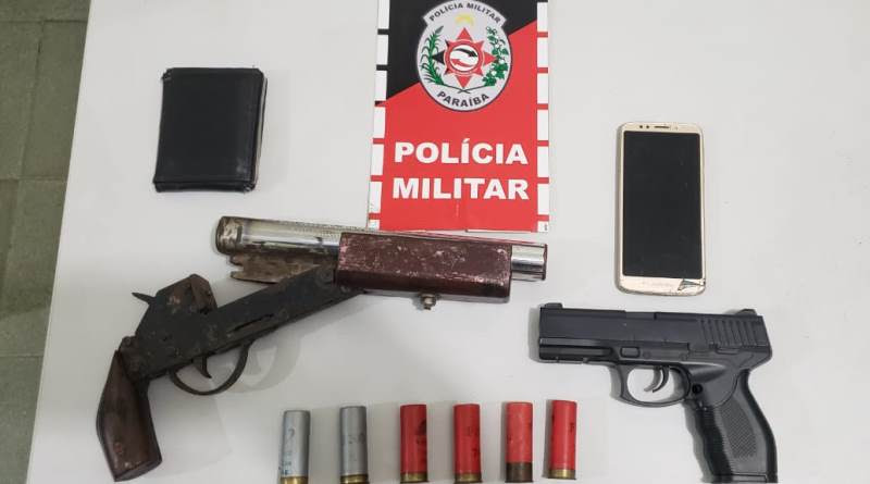 A Polícia Militar apreendeu uma espingarda e um simulacro de pistola com um homem de 20 anos, nessa quarta-feira (11), durante ação do 15º Batalhão da PM, na zona rural de Alagoa Nova, município do agreste da Paraíba. O acusado tinha um mandado de prisão em aberto por homicídio, que aconteceu no dia 1º deste ano, na cidade de Alcantil.