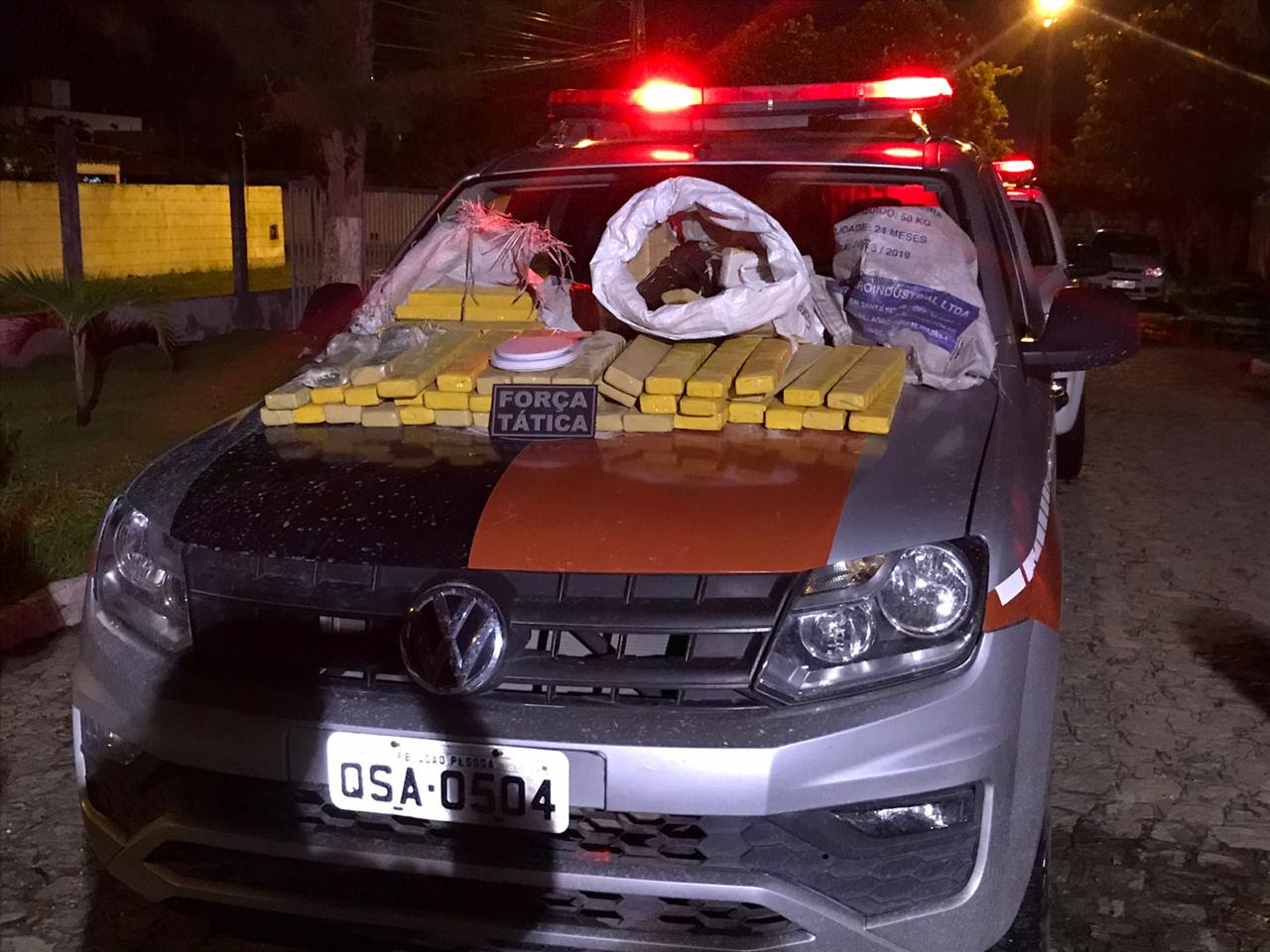 A Polícia Militar apreendeu, nesse domingo (29), uma carga com mais de 65 quilos de maconha que seria distribuída esta semana, nas cidades de Cabedelo e João Pessoa. O entorpecente estava escondido dentro de um barraco de taipa, localizado em uma área de pesca, na praia de Ponta de Matos, em Cabedelo.