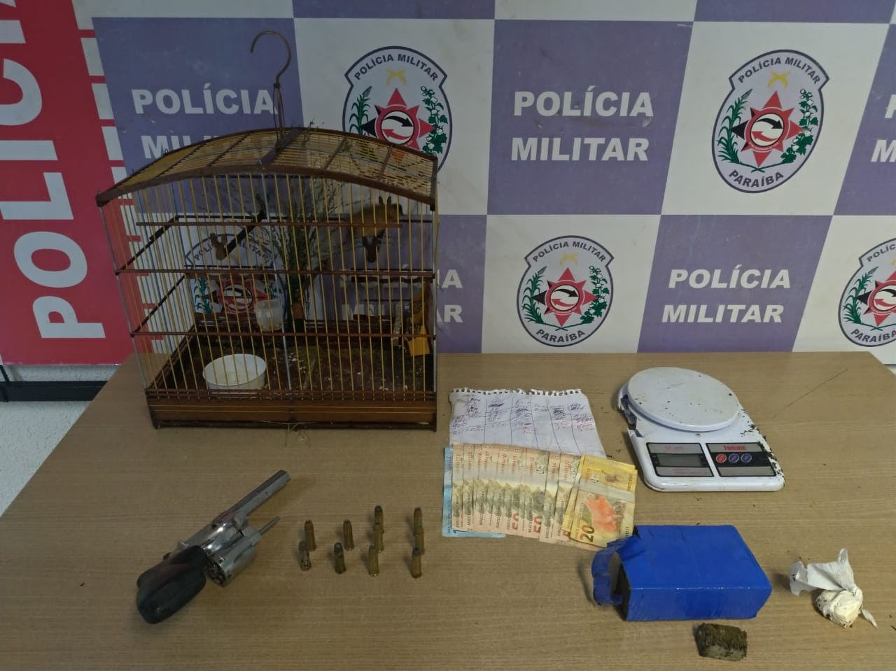 A Polícia Militar colocou fim a mais um ponto de tráfico de drogas, na cidade de Santa Rita, e prendeu em flagrante um suspeito de 44 anos, na noite dessa quarta-feira (13). Ele estava em uma casa, no bairro do Tibiri, onde os policiais da Força Regional apreenderam um revólver, munições, balança de precisão, maconha, cocaína e dinheiro, que teria sido obtido com a venda dos entorpecentes.