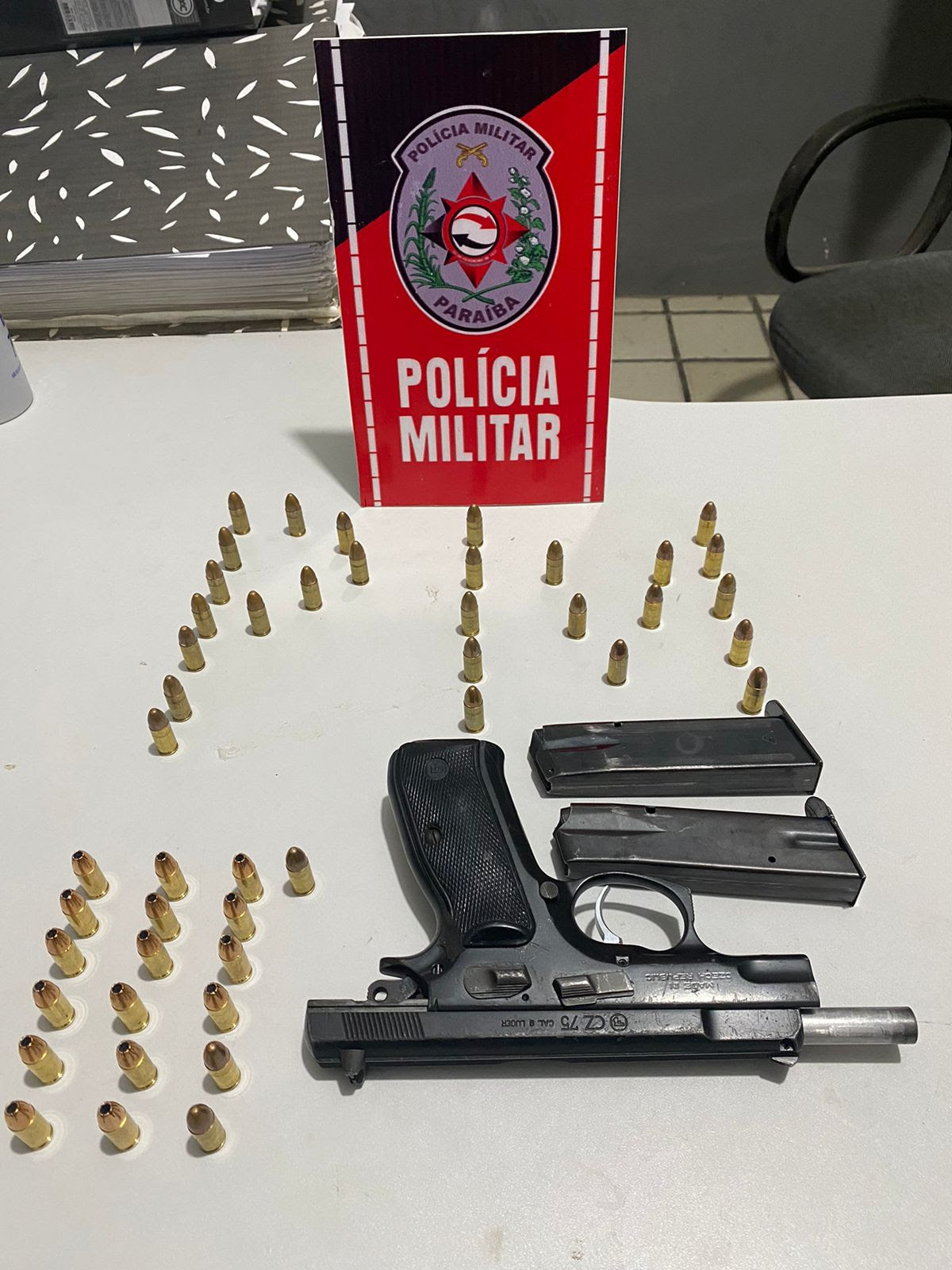Policiais militares do 12º BPM apreenderam, na noite desse sábado (11), uma pistola com várias munições que estavam na posse de um adolescente de 17 anos. A apreensão ocorreu na estrada que dá acesso ao povoado de Barra de Cima, zona rural de São Bento-PB.