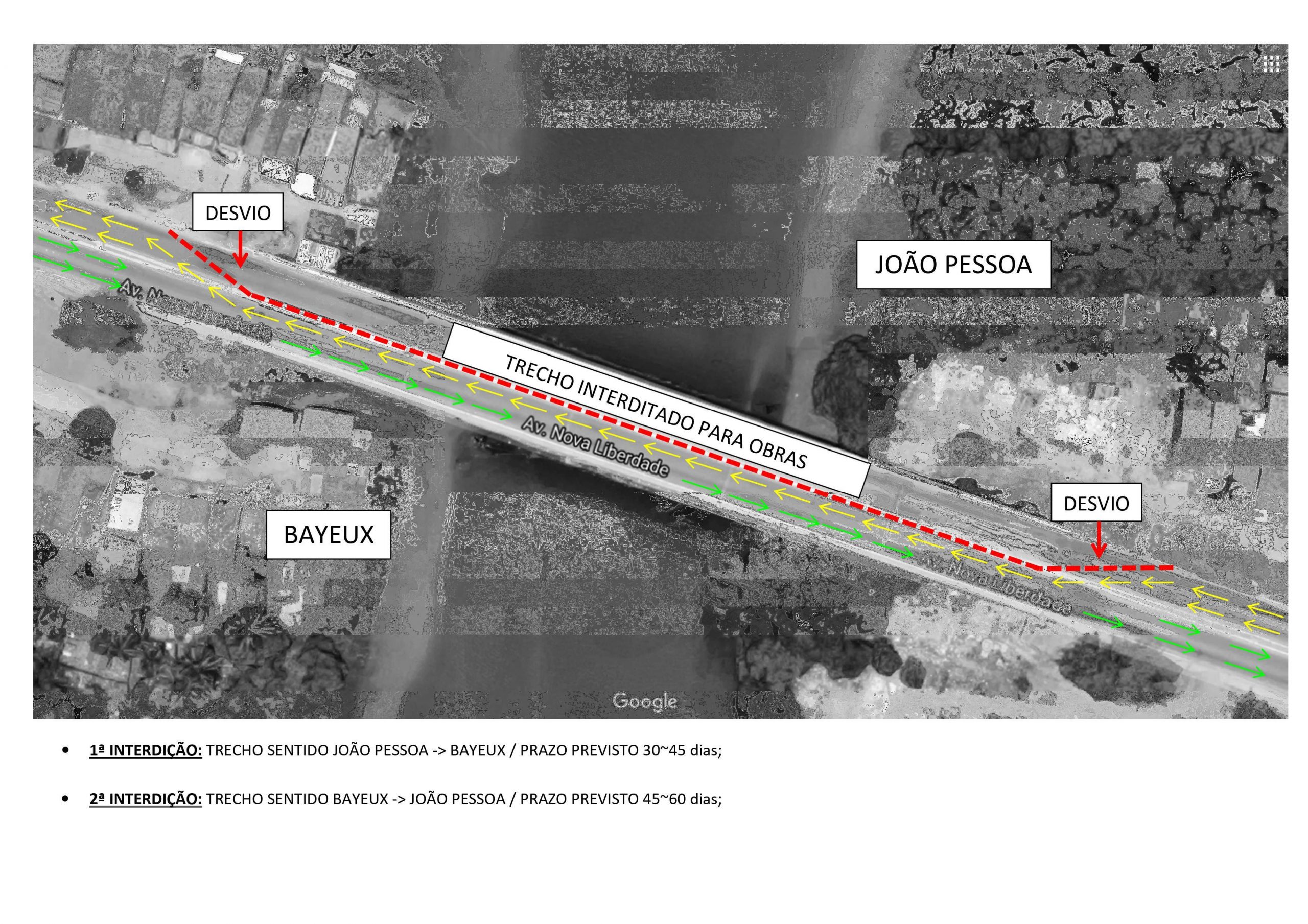 Conforme informações do engenheiro Francisco de Assis Ferreira de Lima, gestor da obra, os serviços na ponte sobre o rio Sanhauá serão realizados em duas etapas: na primeira etapa, cuja duração deverá ser de 45 dias, o tráfego de veículos será efetuado pelas faixas da esquerda e terá um desvio que será iniciado em 120 metros antes e 120 metros depois da ponte, totalizando 400 metros. Com isso, as faixas Bayeux – João Pessoa passarão a funcionar como mão dupla durante a execução dos serviços. Na segunda etapa, haverá interdição das faixas no sentido Bayeux – João Pessoa, cujos serviços terão duração de 60 dias e serão efetuados após a conclusão da primeira etapa, sendo adotado o procedimento simétrico ao anterior.