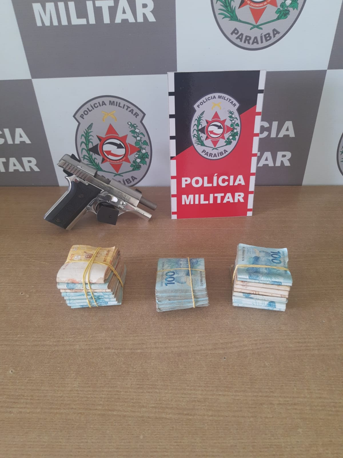A abordagem aconteceu quando o veículo, que tem placas de Pernambuco, estava em frente a uma loja e pessoas teriam desconfiado da atitude e ligado para o 190 (número do Centro Integrado de Operações Policiais). Equipes do 5º Batalhão foram até o local e na revista encontraram a arma e o dinheiro.