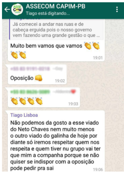 No grupo de No grupo de whatsapp oficial da Assessoria de Comunicação do município de Capim, na Paraíba, a baixaria rolou solta.